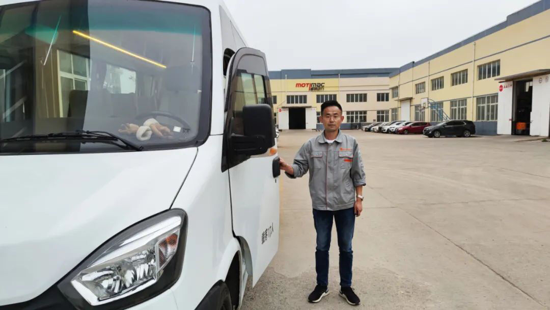 Todas las mañanas el autobús de Motimac nos recoge de casa a la fábrica. El Sr. Liu es un conductor considerado. Limpia, esteriliza y luego sonríe a todos. "Mañana" y "Sonrisa" comienzan un nuevo día.